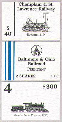This shows the usual 18xx game components. Certificates for the Champlain